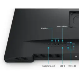 - Conectividade: 1 x HDMI 2.0, 1 x DisplayPort 1.4, 1 x USB-C (65 W, compatível com Thunderbolt 3/4), 2 x USB 3.2, saída para auscultadores
